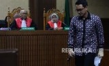 Terdakwa kasus suap dan gratifikasi terkait proyek-proyek di Dinas Pekerjaan Umum dan Perumahan Rakyat (PUPR) Provinsi Jambi, Zumi Zola menjalani sidang dengan yang beragendakan putusan di Pengadilan Tindak Pidana Korupsi (Tipikor), Jakarta, Kamis (6/12). (FOTO : Republika/Iman Firmansyah)