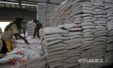 Pekerja mengangkut karung berisi beras dari gudang Perum Bulog untuk dijual ke pasar di Serang, Banten, Sabtu (8/12). Menjelang libur Natal dan Tahun Baru Perum Bulog menggelontorkan 2,4 juta ton stok beras untuk menekan harga beras jenis medium di pasaran. (FOTO : Asep Fathulrahman/Antara)