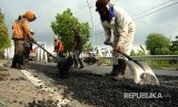 Pekerja mengerjakan pengaspalan jalan rusak di jalur Pantura Tegal, Jawa Tengah, Sabtu (8/12). Menjelang arus mudik Natal dan Tahun Baru 2019 sejumlah jalan yang rusak di jalur Pantura mulai diperbaiki untuk mengurangi angka kecelakaan. (FOTO : Oky Lukmansyah/Antara)