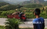 Seorang anak melihat truk yang membawa gajah jinak dan seekor gajah liar yang dipindahkan ke habitatnya (translokasi) di Kota Subulussalam, Aceh, Ahad (9/12/2018). (FOTO : Antara/Irwansyah Putra)