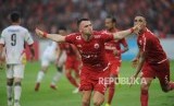 Penyerang Persija Jakarta Marko Simic melakukan seusai mencetak gol ke gawang Mitra Kukar dalam laga Liga 1 2018 di di Stadion Utama Gelora Bung Karno, Jakarta, Ahad (9/12). (FOTO : Republika/Edwin Dwi Putranto)
