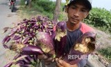 Petani memperlihatkan terong yang rusak di area persawahan Desa Wates, Kediri, Jawa Timur, Senin (10/12/2018). Petani di wilayah tersebut mengeluhkan serangan hama tikus yang mengakibatkan sedikitnya 10 persen hasil panen terong mengalami kerusakan. (FOTO : Prasetia fauzani/Antara)
