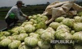 Warga menata Kubis yang baru dipanen ke atas bak mobil di areal persawahan desa Mento, Candiroto, Temanggung, Jawa Tengah, Senin (10/12/2018). Menurut petani sejak sepekan terakhir harga Kubis turun menjadi Rp3 ribu-Rp4 ribu per kilogram dari harga sebelumnya yang mencapai Rp6 ribu-Rp7 ribu per kilogram ditingkat petani akibat melimpahnya persediaan di tingkat petani. (FOTO : Anis Efizudin/ANTARA FOTO)
