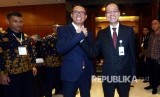 Dirut Bank BJB non aktif Ahmad Irfan (kanan) berfoto bersama dengan Direktur Kepatuhan dan Manajemen Resiko Agus Mulyana (kiri) yang telah diangkat menggantikan Ahmad Irfan sebagai Dirut Bank BJB usai Rapat Umum Pemegang Saham Luar Biasa (RUPS LB) 2018, di Hotel Aryaduta, Kota Bandung, Selasa (11/12). (FOTO : Republika/Edi Yusuf)