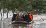 REPUBLIKA.CO.ID, KAMPAR -- Petugas Basarnas menggunakan perahu karet mengevakuasi santri dan santriwati yang terjebak banjir di Pondok Pesantren Darul Ulum, Kecamatan Siak Hulu, Kabupaten Kampar, Riau, Rabu (12/12).