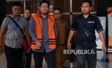 REPUBLIKA.CO.ID, JAKARTA -- Bupati Cianjur Irvan Rivano Muchtar mengenakan rompi tahanan berjalan keluar ruangan seusai menjalani pemeriksaan di gedung KPK, Jakarta, Kamis (13/12).