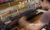 Pekerja menyelesaikan kain Tenun Ikat khas Kediri menggunakan alat tenun di Kelurahan Bandar Kidul, Kediri, Jawa Timur, Kamis (13/12/2018). Tenun ikat berbagai macam corak yang dijual dengan Rp175.000 - Rp250.000 per potong tersebut telah diekspor ke berbagai negara. (FOTO : Galih Pradipta/Antara)