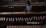 Pekerja menyusun batu bata di Kampung Urug, Kota Tasikmalaya, Jawa Barat, Kamis (13/12). Memasuki musim hujan proses penjemuran batu bata terkendala cuaca, dari biasanya dua minggu menjadi tiga minggu, sehingga pembuatan batu bata menurun. (FOTO : Adeng Bustomi/Antara)