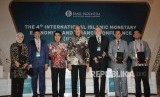Deputi Kementerian Bappenas Amalia Adininggar Widyasanti, University of New Orleans USA Kabir Hasan, Kepala Departemen BI Solikin M Juhro, Deputi Gubernur Bank Indonesia (BI) Dody Budi Waluyo, Professor of University of Bochum Germany Volker Nienhaus, International Islamic University Malaysia Irwandi Jaswir dan Bank Indonesia Rifki Ismal (kiri-kanan) berfoto bersama pada pembukaan acara diskusi The 4th International Islamic Monetary Economic and Finance Conference (IIMEFC) 2018 pada rangkaian acara Indonesia Shari’a Economic Festival ke 5 (ISEF), di Surabaya, Kamis (13/12). (FOTO : darmawan / republika)