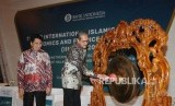 Deputi Gubernur Bank Indonesia (BI) Dody Budi Waluyo (kanan) didampingi Kepala Departemen BI Solikin M Juhro memukul gong sebagai tanda dimulainya acara diskusi The 4th International Islamic Monetary Economic and Finance Conference (IIMEFC) 2018 pada rangkaian acara Indonesia Shari’a Economic Festival ke 5 (ISEF), di Surabaya, Kamis (13/12). (FOTO : darmawan / republika)