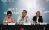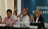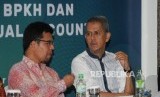 REPUBLIKA.CO.ID, SURABAYA -- Kepala Badan Pengelola Keuangan Haji (BPKH) Anggito Abimanyu bersama Deputi Direktur Departemen Ekonomi dan Keuangan Syariah Bank Indonesia Rifki Ismal dan Direktur Operasional BPKH Islandar Zulkarnain memberikan penjelasan pada acara Diskusi Sosialisasi BPKH dan Simulasi Virtual Account dalam rangkaian acara Indonesia Shari’a Economic Festival ke 5 (ISEF), di Surabaya, Jumat (14/12). Pada diskusi tersebut antara lain dijelaskan mengenai pengelolan dana haji dan pembayaran haji melalui virtual account.