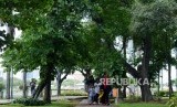 Pengunjung duduk diatas rumput di kawasan Monumen Nasional (Monas), Jakarta, Jumat (14/12). (FOTO : Republika/Putra M. Akbar)