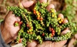 Petani memperlihatka biji lada yang sudah dipanen di Desa Batu Pannu, Mamuju, Sulawesi Barat, Jumat (14/12). Harga lada di tingkat petani turun dari harga Rp120 ribu per kg menjadi Rp 50 ribu per kg karena menurunnya kualitas produksi akibat memasuki musim penghujan, hama dan permainan harga pada tingkat pengepul. (FOTO : Akbar Tado/Antara)