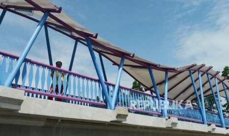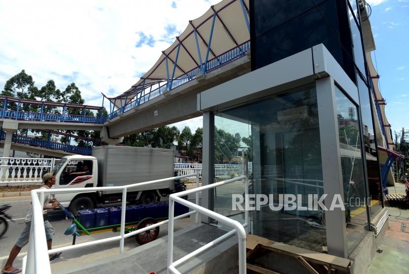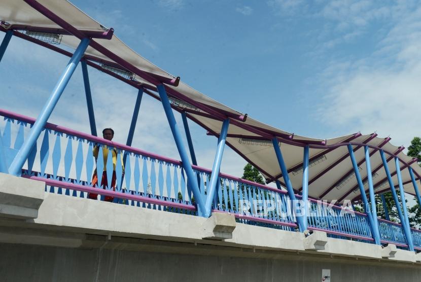 JPO Jelambar Barat yang memiliki nuansa ornamen betawi tersebut memiliki fasilitas lift dan didesain ramah untuk penyandang disabilitas.
