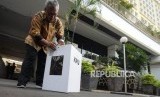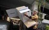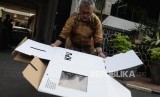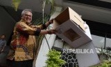REPUBLIKA.CO.ID, JAKARTA -- Ketua KPU Arief Budiman memberikan penjelasan dan pengujian kotak suara berbahan kardus di kantor KPU, Jakarta, Senin (17/12).