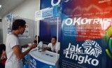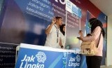 REPUBLIKA.CO.ID, JAKARTA -- Petugas melayani warga yang akan membeli kartu Jak Lingko di Stasiun Tanah Abang, Jakarta, Senin (17/12).