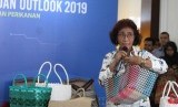 Menteri Kelautan dan Perikanan Susi Pudjiastuti memberikan keterangan kepada wartawan mengenai Refleksi 2018 dan Outlook 2019 di kantor Kementerian Kelautan dan Perikanan (KKP), Jakarta, Senin (17/12/2018). Dalam kesempatan itu Menteri Kelautan dan Perikanan menyampaikan, ia menginginkan pasar ikan modern (PIM) tidak hanya dibangun di wilayah DKI Jakarta tetapi juga di berbagai daerah lainnya sebagai upaya membangun sektor kelautan dan perikanan nasional. (FOTO : Reno Esnir/Antara)