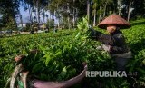 Pekerja memanen daun teh di kebun milik PTPN VIII, Desa Kertasari, Kabupaten Bandung, Jawa Barat, Senin (17/12/2018). Dewan Teh Indonesia (DTI) memprediksi produksi teh di akhir 2018 akan naik tipis yakni 0,62 persen atau sekitar 140.234 ton dibanding produksi teh tahun lalu yang hanya 139.362 ton yang dipengaruhi oleh adanya program GPATN (Gerakan Penyelamatan Agribisnis Teh Nasional) dari pemerintah. (FOTO : Raisan Al Farisi/Antara)