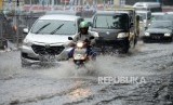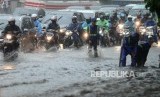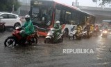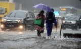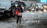 REPUBLIKA.CO.ID, JAKARTA -- Warga melintasi genangan air saat terjadi banjir di kawasan Pancoran, Jakarta, Selasa (18/12).