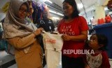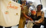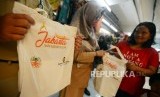 REPUBLIKA.CO.ID, JAKARTA -- Petugas memperlihatkan kantong belanja yang akan dibagikan kepada warga di Pasar Kramat Jati, Jakarta, Selasa (18/12).