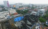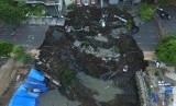Foto aerial kondisi tanah ambles di Jalan Raya Gubeng, Surabaya, Jawa Timur, Rabu (19/12/2018). (FOTO : Antara/Didik Suhartono)