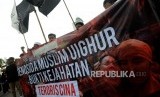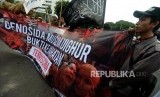 REPUBLIKA.CO.ID, JAKARTA -- Sejumlah anggota Masyarakat Pembela Tauhid menggelar aksi solidaritas terhadap Muslim Uighur saat Hari Bebas Kendaraan Bermotor (HBKB) di Bundaran HI, Jakarta, Ahad (23/12).