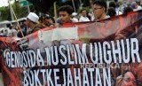 Aksi solidaritas tersebut memprotes kekerasan terhadap Muslim Uighur yang dilakukan oleh Pemerintah Cina.
