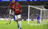 Anthony Martial merayakan gol ke gawang Cardiff pada laga Liga Primer Inggris antara Cardiff City dan Manchester United di Cardiff City Stadium, Cardiff, Wales, Inggris, Ahad (23/12). (FOTO : Jon Super/AP)