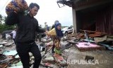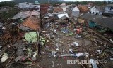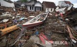 REPUBLIKA.CO.ID, PANDEGLANG -- Sejumlah bangunan rata dengan tanah akibat terjangan tsunami di Sumur Pesisir, Pandeglang, Banten, Senin (24/12).