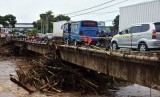 Sejumlah kendaraan terjebak kemacetan setelah kawasan itu diterjang banjir di Lingkungani Bilok Poh, Jembrana, Bali, Senin (24/12/2018). (FOTO : Antara/Nyoman Hendra Wibowo)