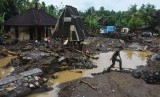 REPUBLIKA.CO.ID, Warga melihat kondisi rumahnya setelah diterjang berbagai material yang terbawa banjir di Lingkungani Bilok Poh, Jembrana, Bali, Senin (24/12).