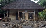 Warga melihat kondisi rumahnya setelah diterjang berbagai material yang terbawa banjir di Lingkungani Bilok Poh, Jembrana, Bali, Senin (24/12/2018). (FOTO : Antara/Nyoman Hendra Wibowo)