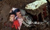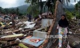 Salah satu foto warga yang terdampak tsunami di Desa Way Muli, Kalianda, Lampung Selatan, Senin (24/12). (FOTO : Republika/Putra M. Akbar)