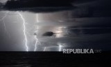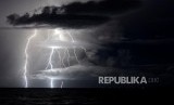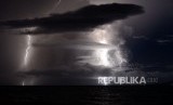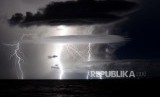 REPUBLIKA.CO.ID, LAMPUNG SELATAN -- Petir menyambar di dekat lokasi aktivitas Gunung Anak Krakatau terlihat dari Rajabasa, Lampung Selatan, Rabu (26/12) dini hari.
