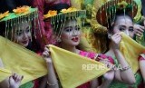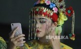 Seorang penari mempersiapkan diri sebelum tampil pada Temu Enam Gaya Topeng yang digelar mahasiswa Prodi Tari Fakultas Seni Pertunjukan Institut Seni Budaya Indonesia (ISBI) Bandung angkatan 2015-2016 dan Dinas Pariwisata dan Kebudayaan Jawa Barat, di Gedung Pusat Pengembangan Kebudayaan (PPK), Rabu (26/12). (FOTO : Republika/Edi Yusuf)