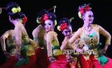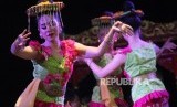 Penampilan sejumlah mahasiswa pada Temu Enam Gaya Topeng yang digelar mahasiswa Prodi Tari Fakultas Seni Pertunjukan Institut Seni Budaya Indonesia (ISBI) Bandung angkatan 2015-2016 dan Dinas Pariwisata dan Kebudayaan Jawa Barat, di Gedung Pusat Pengembangan Kebudayaan (PPK), Rabu (26/12). (FOTO : Republika/Edi Yusuf)
