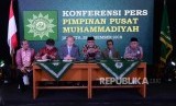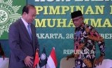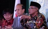 Ketua Umum PP Muhammadiyah Haedar Nasir bersama Duta Besar China untuk Indonesia Xiao Qian bersiap memberikan keterangan usai melakukan bersilahturahmi di Gedung Pusat Dakwah Muhammadiyah, Jakarta, Jumat (28/12). (FOTO : Republika/Prayogi)