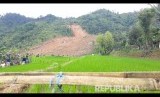 Lokasi longsor di Kampung Cimapag Desa Sinaresmi Kecamatan Cisolok Kabupaten Sukabumi Selasa (1/1). (FOTO : Republika/Riga Nurul Iman)
