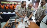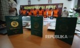 REPUBLIKA.CO.ID, BANDUNG -- Kepala Divisi keimigrasian Kementerian Hukum dan Ham Jawa Barat Ari Budijanto menunjukkan barang bukti terkait penahanan delapan WNA Nigeria yang melangar izin tinggal di Indonesia saat konferensi pers tentang pencapaian kinerja Kantor Imigrasi Kelas I TPI Bandung, Jalan Surapati, Kota Bandung, Rabu (2/1).