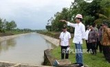 Tinjau Perbaikan irigasi Primer. Presiden Joko Widodo meninjau proyek perbaikan irigasi primer di Lodoyo, Blitas, Jawa Timur, Kamis (3/1/2019). (FOTO : Republika/ Wihdan)
