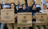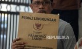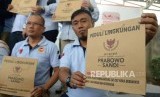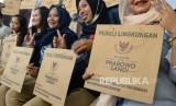 REPUBLIKA.CO.ID, JAKARTA -- Sejumlah relawan Prabowo-Sandi menujukan paper bag saat launcing kampanye peduli lingkungan di Jakarta, Ahad (6/1).