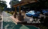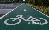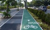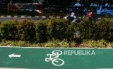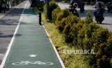REPUBLIKA.CO.ID, JAKARTA -- Jalur khusus sepeda tersedia di trotoar kawasan Senayan, Jakarta, Senin (7/1).