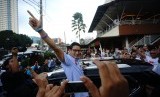REPUBLIKA.CO.ID, DEPOK -- Calon Wakil Presiden nomor urut 02 Sandiaga Salahuddin Uno menyapa para milineal usai hadir dalam acara dialog dengan milneal Depok, di Margonda, Depok, Jawa Barat, Senin (7/1/19). Sandiaga Uno meminta para milenial untuk menjadi penggerak ekonomi rakyat.