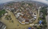 Foto udara permukiman terdampak banjir di Dayeuh Kolot, Kabupaten Bandung, Jawa Barat, Senin (26/2). Luapan Sungai Citarum yang merendam sedikitnya 9.000 rumah di 8 kecamatan Kabupaten Bandung. (FOTO : Raisan Al Farisi/Antara)