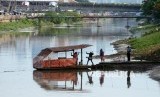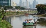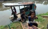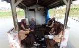 Perahu tersebut menjadi salah satu moda transportasi bagi warga untuk menyeberangi Banjir Kanal Barat dengan biaya Rp 1.000.