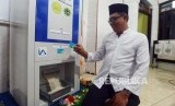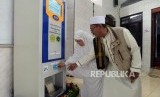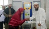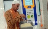 Warga mencoba fasilitas ATM beras usai peresmiannya di Masjid Jami Raudhatul Jannah, Tanjung Priok, Jakarta, Ahad (13/1). (FOTO : Republika/Putra M. Akbar)