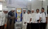 Ketua Iluni FKUI Asep Saepul Rohmat (ketiga kiri) dan Habib Muhammad haykal Al-Khaneman (kedua kiri) saat peresmian ATM beras di Masjid Jami Raudhatul Jannah, Tanjung Priok, Jakarta, Ahad (13/1). (FOTO : Republika/Putra M. Akbar)