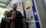 Habib Muhammad haykal Al-Khaneman (kedua kiri) mencoba fasilitas ATM beras usai peresmiannya di Masjid Jami Raudhatul Jannah, Tanjung Priok, Jakarta, Ahad (13/1). (FOTO : Republika/Putra M. Akbar)