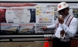 Direktur Operasi II PT Adhi Karya (Persero) TBK. memberikan penjelasan saat meninjau pembangunan stasiun LRT Taman Mini di Jakarta, Senin, (14/1). (FOTO : Republika/Putra M. Akbar)