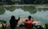 REPUBLIKA.CO.ID, JAKARTA -- Warga saat memancing ikan di Taman Situ lembang, Menteng, Jakarta, Rabu (16/1).